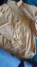 очень насыщенный классный тон жёлтого!! материал приятный пришла быстро, рубашкой довольна