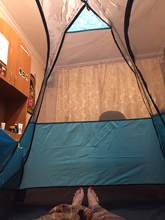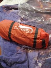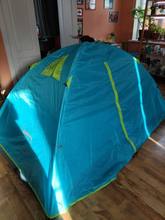 Tent box Bright, light. Very good sticks-arcs. Pegs in the kit are short, but not deadly. How will keep the water checked in a month... But at first glance everything is fine. I was just looking for a small one, for one person. In this it is easy to fit two, or 1 person with all things. A little "sagging" The grid inside-but this is easily solved by clothespins) Oooooochen long delivery. Sent on the last day (referring to holidays in China). Track tracked to China border, further lost)