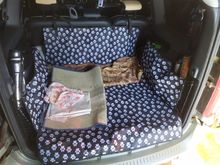 It came very quickly, the seams look very dense and the fabric is very dense. In the trunk until I tried to hang it in size, it's huge. Bought for a large dog to go to the vet. In appearance, the fabric will withstand the claws of the dog. Trunk with a third next to the skin. I think it is very useful and wheels or things to put and carry safely. Expected a photo with a soft gasket. There's no such thing. Baby fabric. Price norms.