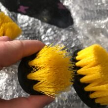 But after five minutes of letting some Comet spray sit on my shower and then using these brushes I am amazed. It saved me so much time and effort. I did enlist the help of my husband and had to change my drill battery- we desperately need a different drill- but seriously after about 30 minutes and minimal effort my shower looks stunning. I haven’t used these multiple times so I can’t speak to how they hold up but the first use was great.