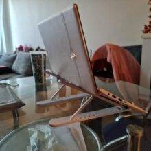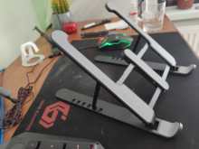 Stand plastic, for small laptops, up to 14 ", more hang out in the air, very not stable, the photo shows (17"), complete with a cover