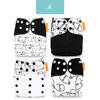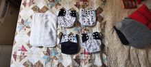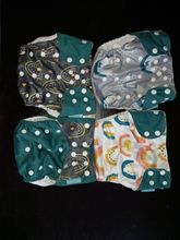 Colors are the same as those in the image. Seams and material are in good condition. The 4 come together in a bag with the store logo and don't bring any weird smell. Regarding the utility diapers fit the size of the baby, have no leakage and the material is of good quality, are resistant. Despite the use they do not deteriorate easily. They got here fast.