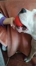 Perfect, I have an American staff and this hard ball is quite suitable for his jaw