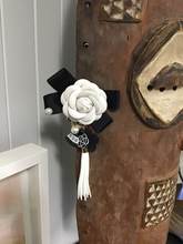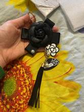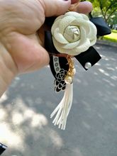 Not accuate as in the picture but still pretty. I include the pictures to compare the store website vs mine. One pearl is missing and flower badge is black instead of white. But for the price, it's still nice.