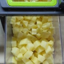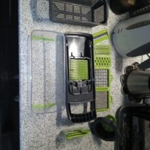 So excited to get this today. Used it to slice potatoes for frying and easily changed the blade to chop a variety of vegetables for a chopped salad — it worked great. Next test will be to chop a bunch of onions for the freezer. It was easy to clean and won’t take up much space to store in a handy kitchen drawer. It appears to be sturdy and I hope if I don’t get to carried away by putting too large pieces of veggies in it, it’ll last me a long time. Good value for the price and I like that I don’t have to plug it in.