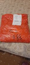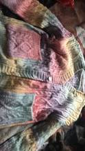 Заказала L, на свой 42 размер. Фото прилагаю. Ткань мягкая, цвет яркий. На кофте никаких опознавательных знаков что за ткань и как стирать, не ясно. Нить похожа на акрил, думаю в машинке стирать и отжимать нельзя.