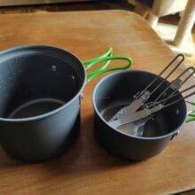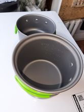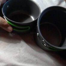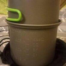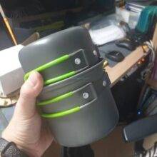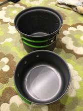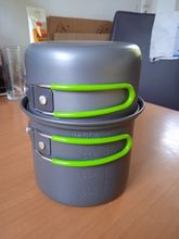 The order went two weeks, did not communicate with the store. Everything is fine, one person will do, for rest at sea with a tent is excellent. Unfortunately, my burner does not fit into this pot, well, nothing terrible. There is no smell of toxic, no dents. Light. Recommend. Thank you!