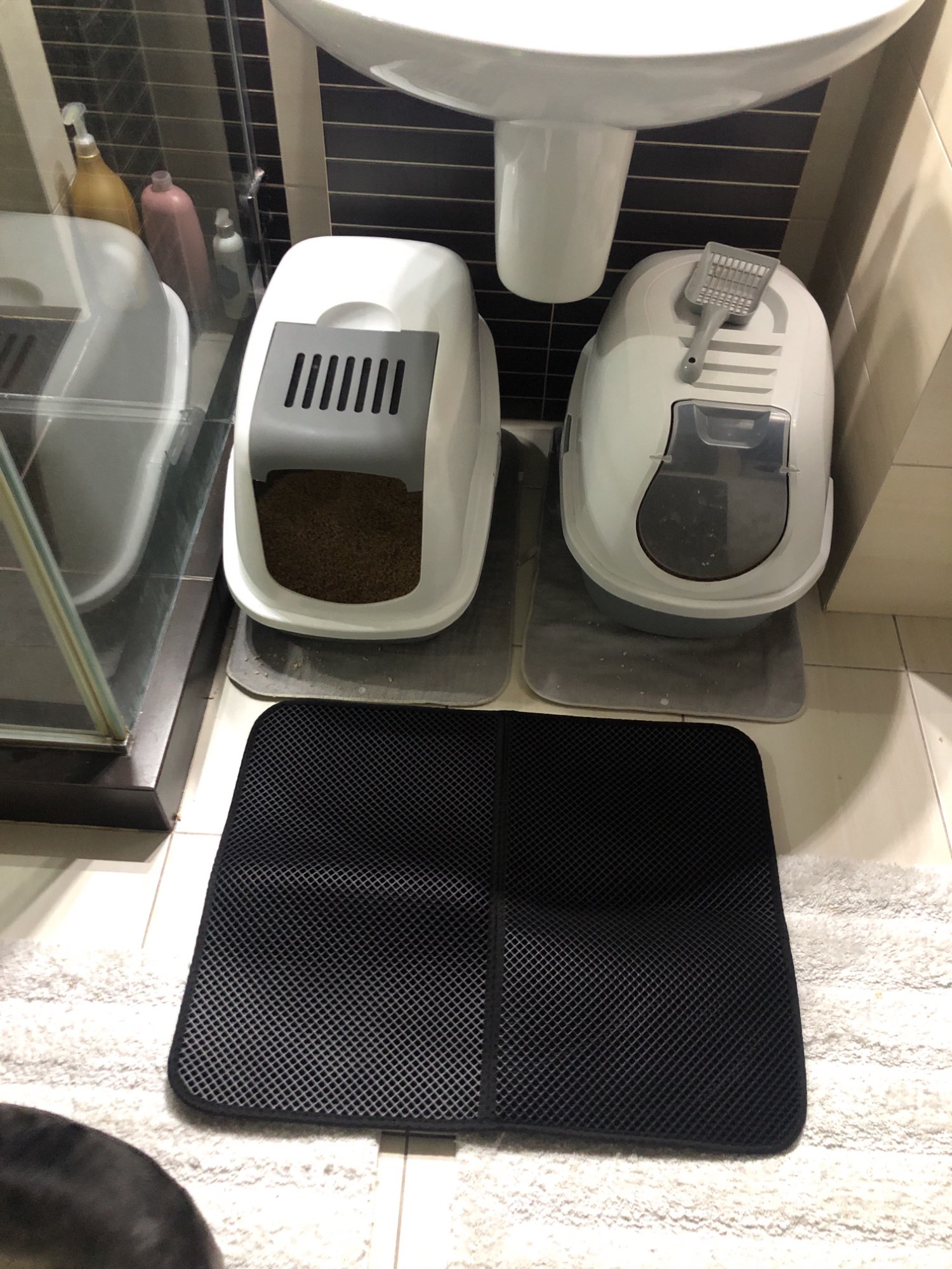 Bought a similar mat a while ago which works fine but is small and was used in front of a covered litter tray. But my cats didn’t like the covered style and one has terrible aim and sometimes thinks next to the litter tray is ok. So this is the largest size and will catch mess on all sides of the tray. It is very well made and seems to be thicker and more durable than my old one. Very happy with item. Seller sent it straight away too, thanks.