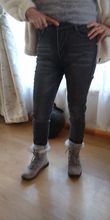 Beautiful jeans gradient Gray, same as the picture!! Arrived on time and perfect size (I dressed the a 44/46 and I took a 30) I go to brush to me that I have a little belly. Are long and comfortable, slightly elastic, and with the hole of the button to be drilled. Inside are with warm sleeping and arrive unwrapped with an elastic band for hair colorful and cute. Excellent!!! Have them taken all colors available for how i piaciuti! Li board, soddisfattissima!!