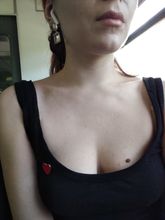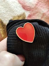 The heart went for a long time, more than a month. It looks very aesthetic and pleasant. In height, the icon of a centimeter is one and a half. The only thing-the pin is short, but on thin clothes is quite good. In general, excellent