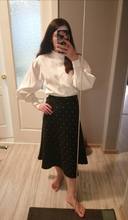 Blouse is the most elegant, especially for this money! The color is boiling White, the fabric is dense, does not shine through, the quality is excellent! Size L at 44 Russian villages is great (og 88, OT 63). Height 165, sleeve length is perfect. Thank you very much!
