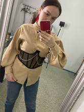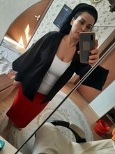 Just fell in love with this blouse. The material than it resembles suede, the seams are even, the threads stick out a little, but I do not find it critical! On the Russian size 46 took 2XL, came up perfectly, for its price well, just fire