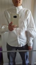 Wow, shipping was unexpectedly fast! Received the blouse and was blown away by the quality - sizing is perfect and the material is thick (not the see-through cheap kind)! Love the mandarin collar and puffed sleeves too! Just in time for winter office wear! (Probably should have ironed the blouse before taking the photo...) Thank you so much store for the quality product!
