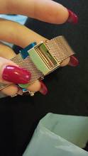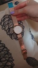 The clock is great! Packed well, delivery by Courier (very fast), inexpensive (on other sites more expensive). They look expensive, as they say. On the female handle is perfect. Of the minuses: there is no special thing to raise the size regulator on the watch (I used manicure scissors). In general, more than satisfied!