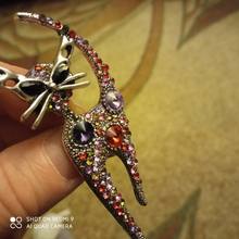 Wuli&baby Vintage Rhinstone Cat Brooches For Women Metal Multi-color Cat Animl Casual Party Brooch Pins Gifts